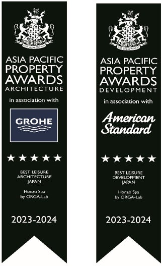 「ASIA PACIFIC PROPERTY AWARDS(アジア太平洋不動産賞)」の表彰式は、2023年5月30日〜31日にかけて、タイのマリオット・マーキス・クイーンズ・パーク・バンコクで開催され、本草湯の企画、意匠設計を担っていただいた「ORGA-Lab 株式会社赤坂知也建築設計事務所」(東京都世田谷区)が、レジャー建築部門とレジャー開発部門で最高賞の5つ星を受賞しました。