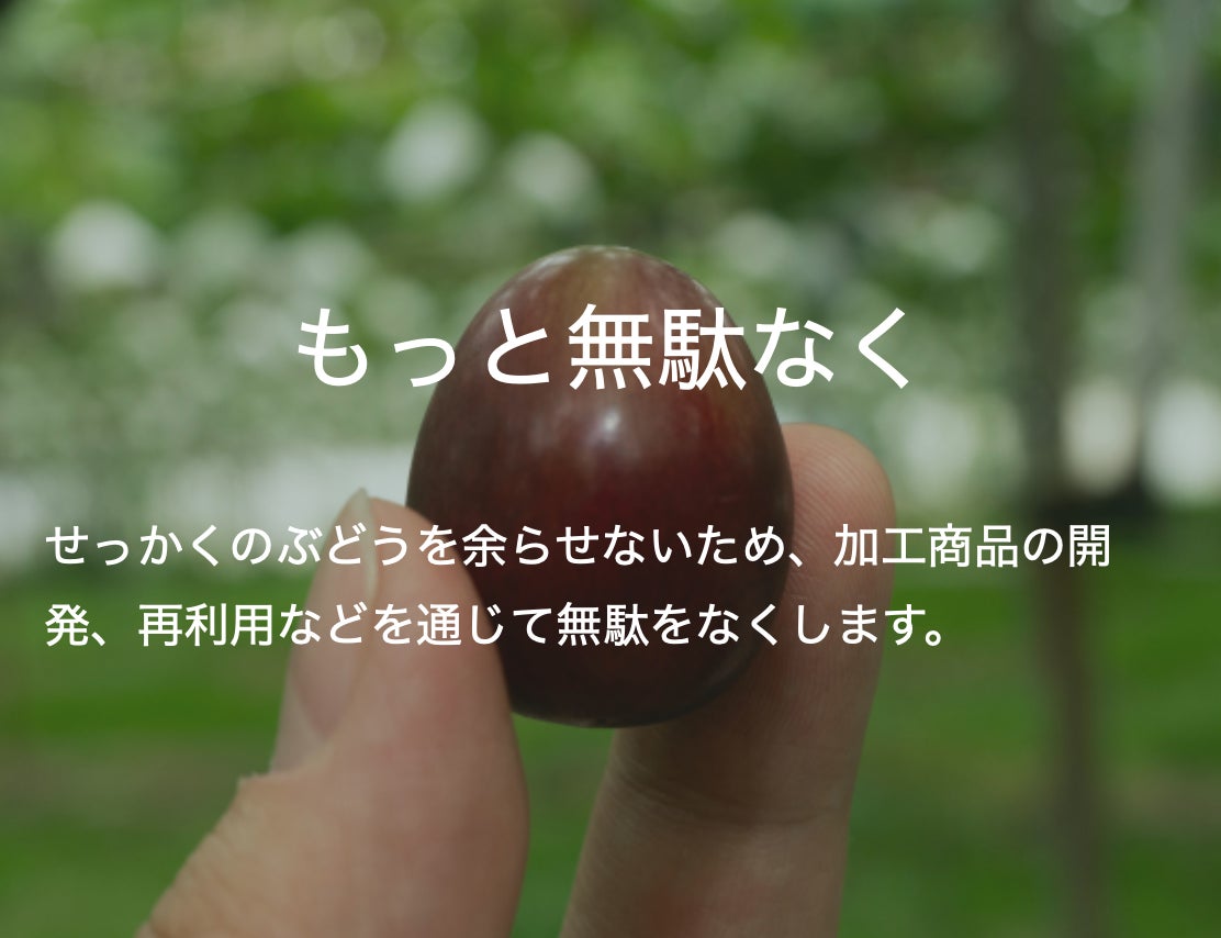 希少な品種のぶどう狩りや、最新技術を取り入れた農業体験など、人や企業が集まるぶどうのテーマパーク「パープルMぶどうランド」を整備していきます。