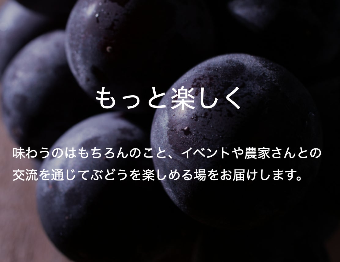 自社農園や牧場の運営、リアル&バーチャルでの農業体験イベント、ぶどうの育種(新種の研究開発)、グッズの販売、加工品の製造販売、アジアへの輸出、農業番組の企画制作などを行い、おいしさと楽しさを直接お届けします。