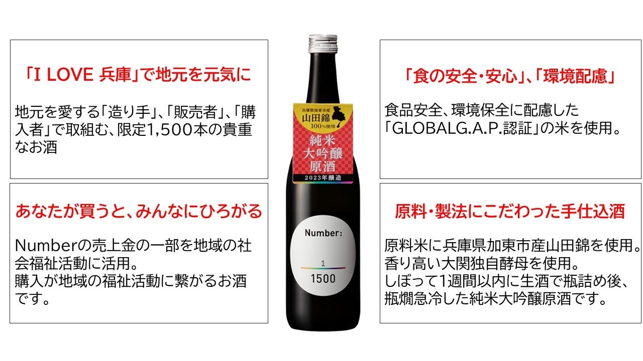 兵庫県に関わるみんなの日本酒「Number:純米大吟醸原酒」を限定1,500本発売