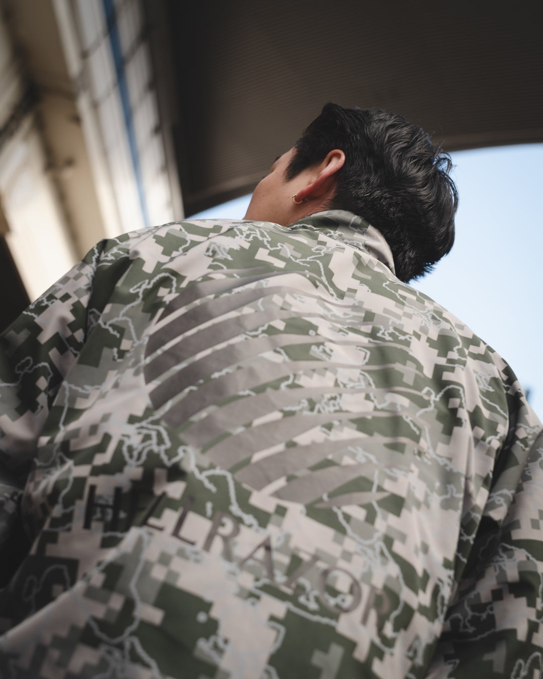 全アイテムに使⽤したメインファブリックであるデジタルカモフラージュには、デジタルの世界