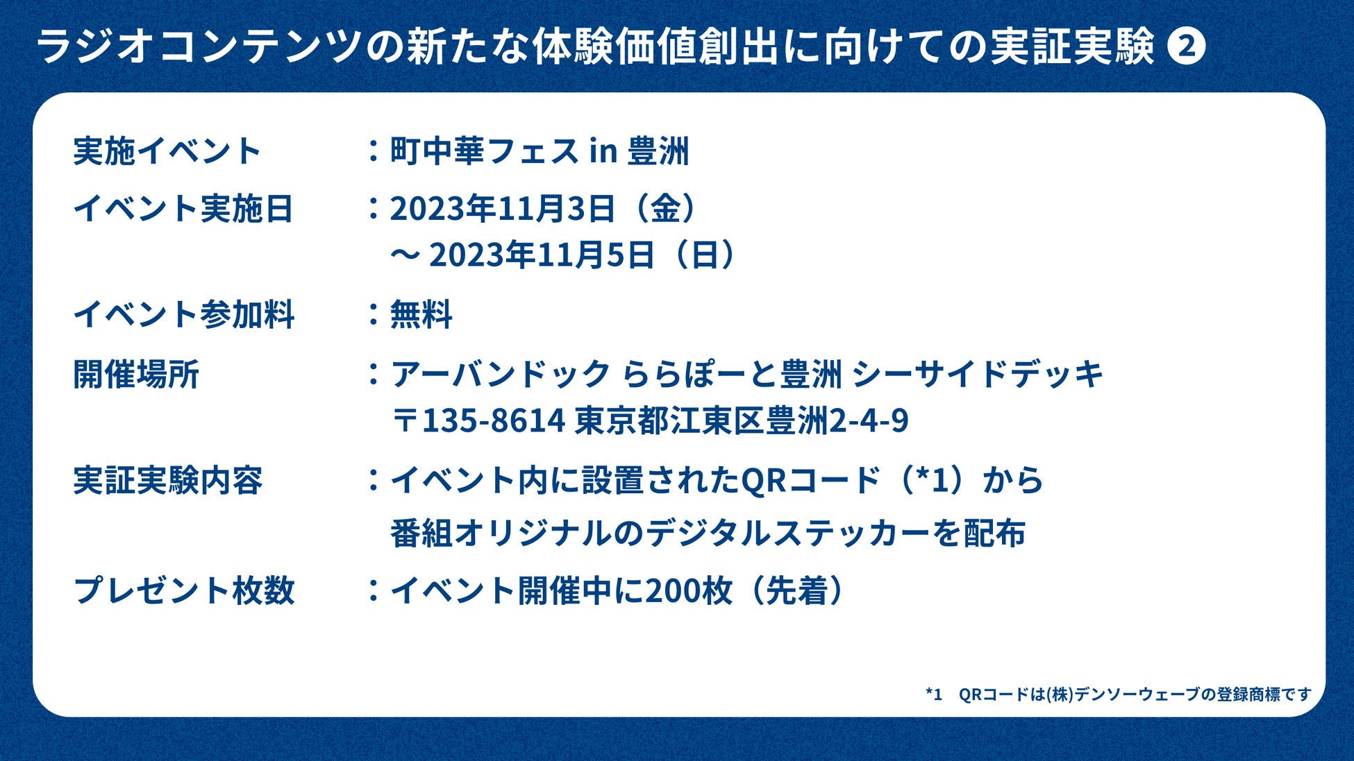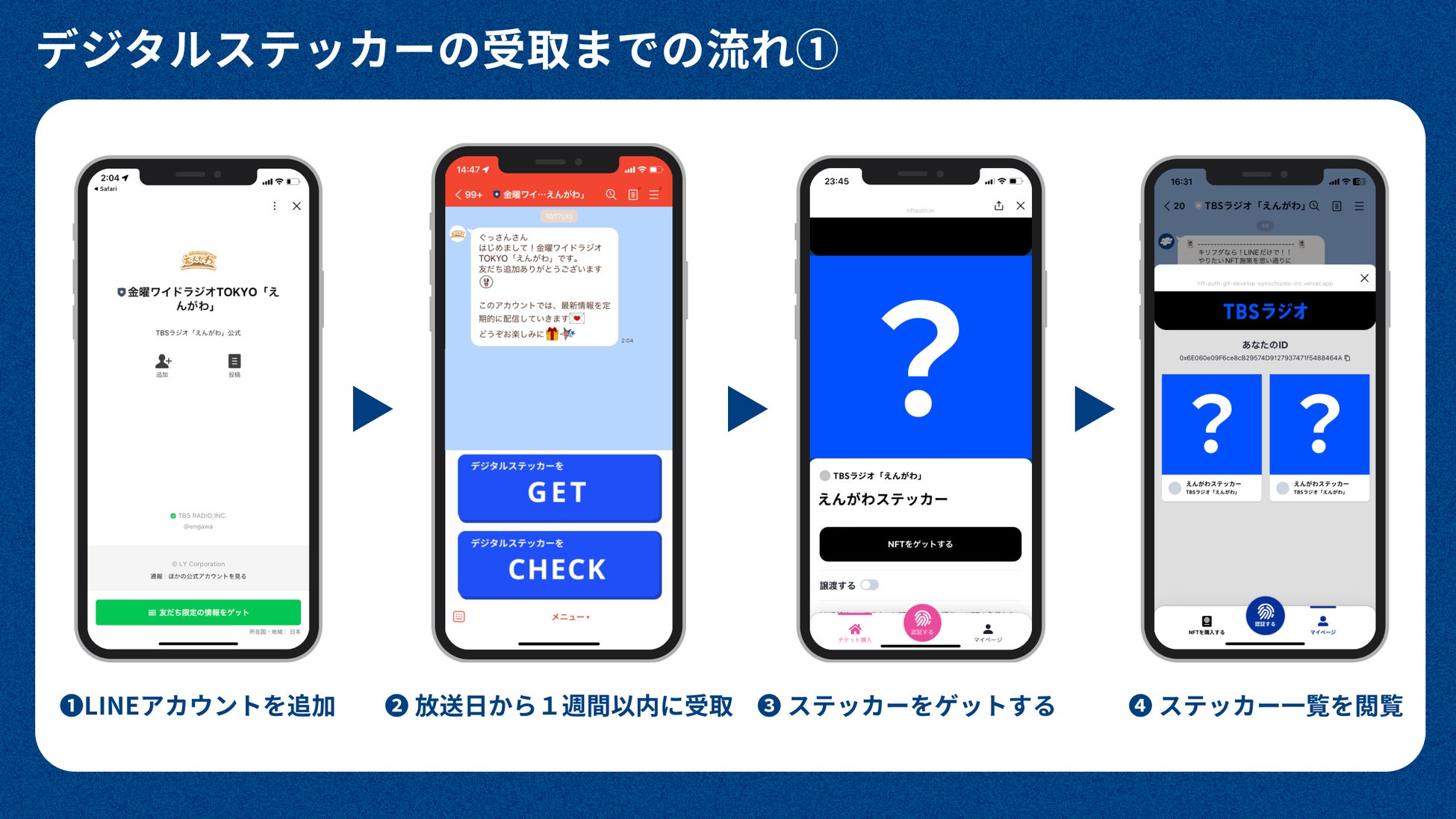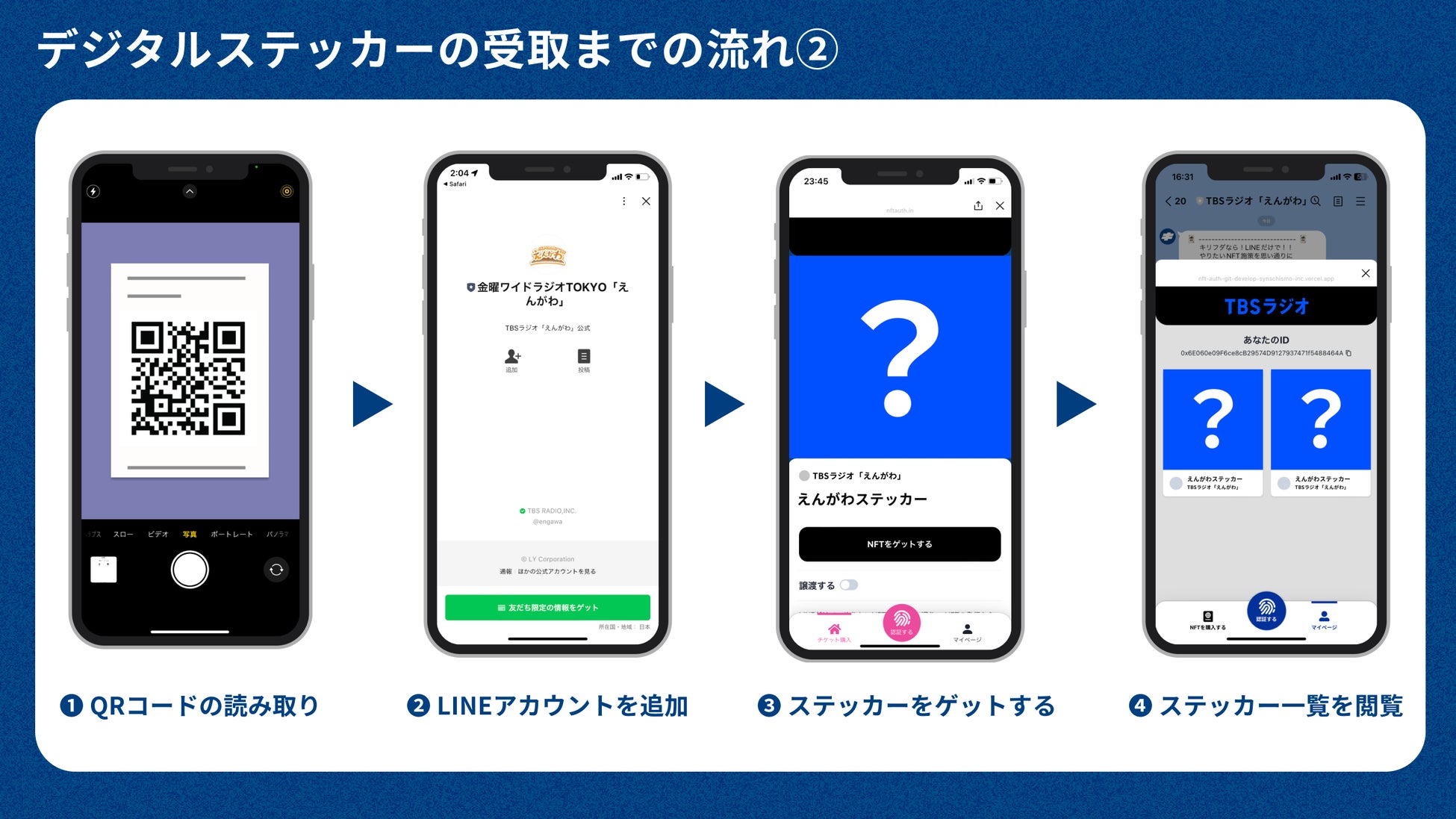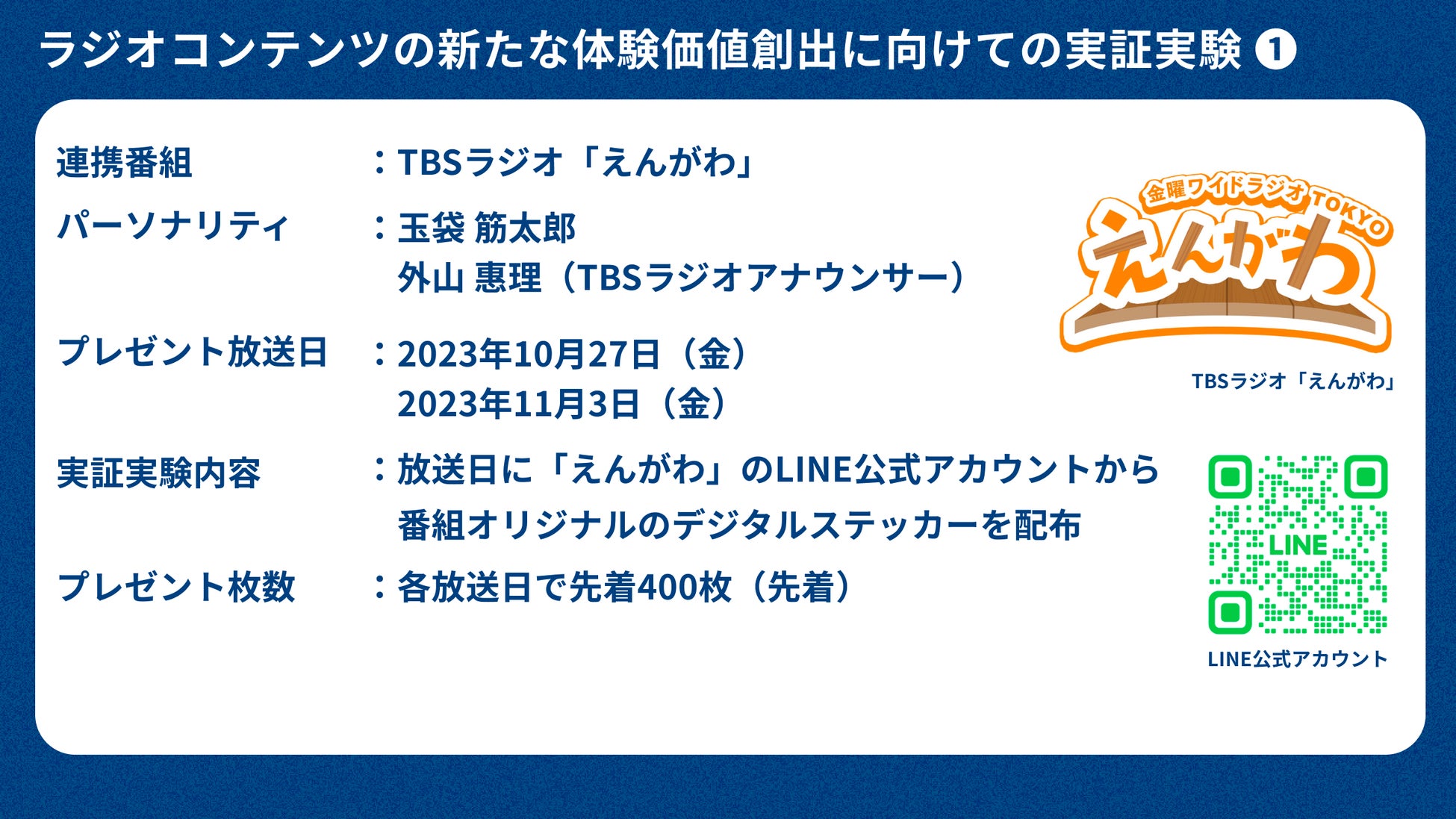 本実証実験は、TBSラジオ「えんがわ」(10月27日と11月3日の放送回)の放送期間中にデジタルステッカーの配布を行います。
