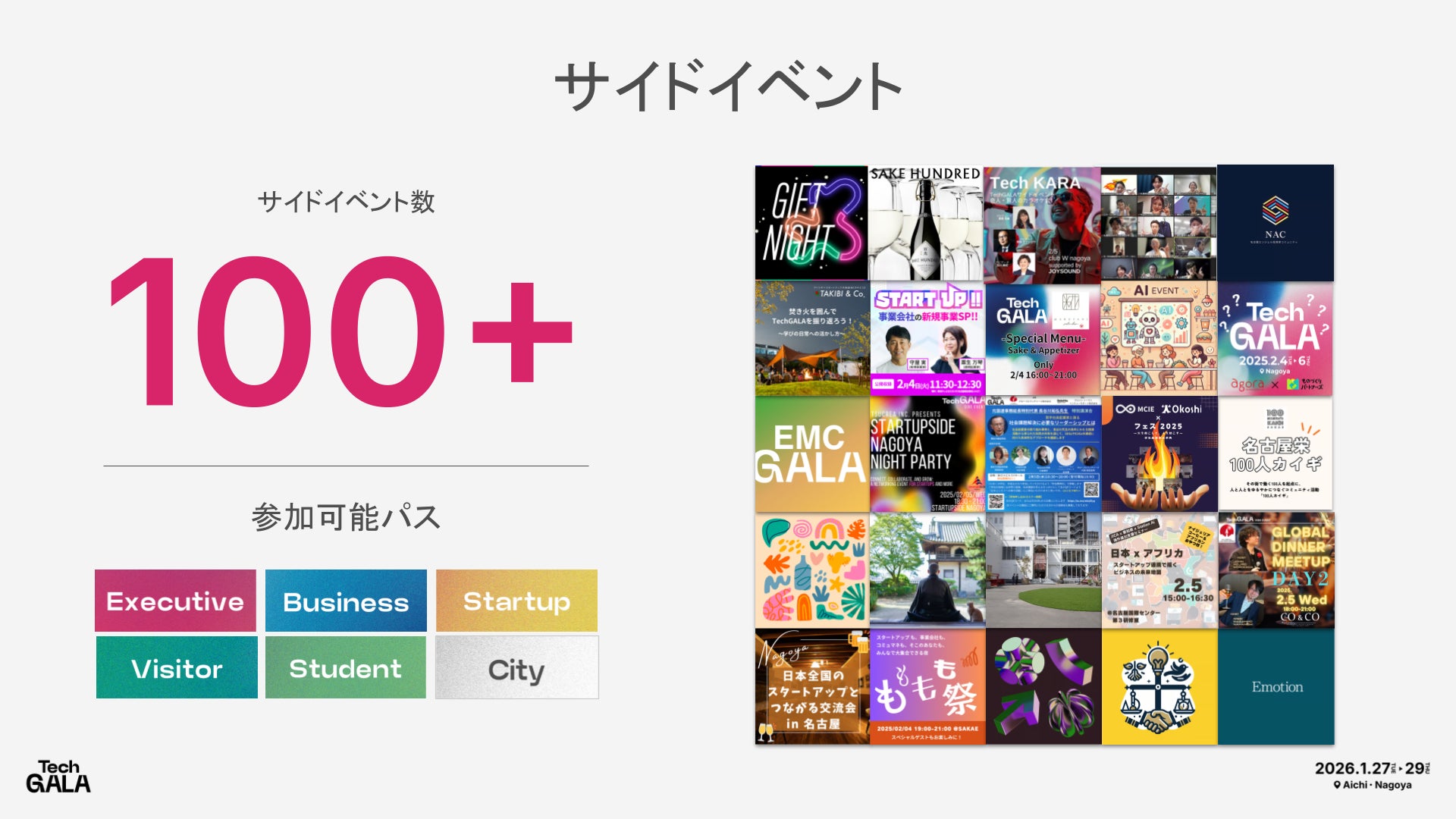 「Central Japan Startup Ecosystem Consortium」は前回、約5,000名が訪れたテクノロジーの祭典「TechGALA Japan 2026」を2026年1月27日(火)から29日(木)にかけて、愛知県名古屋市で開催します。