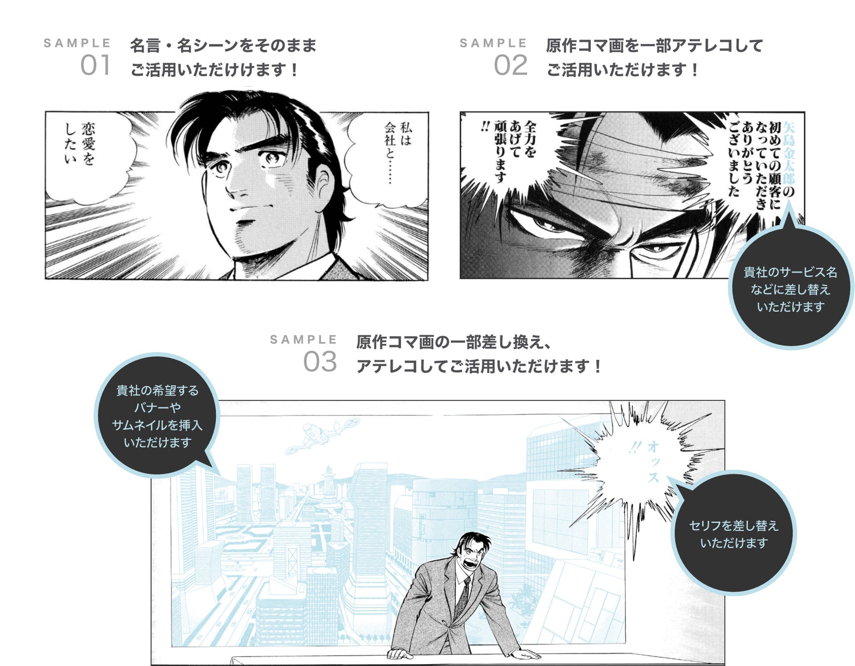 広告販促支援、情報発信支援など、幅広い用途に応じた最適な「サラリーマン金太郎」のイ