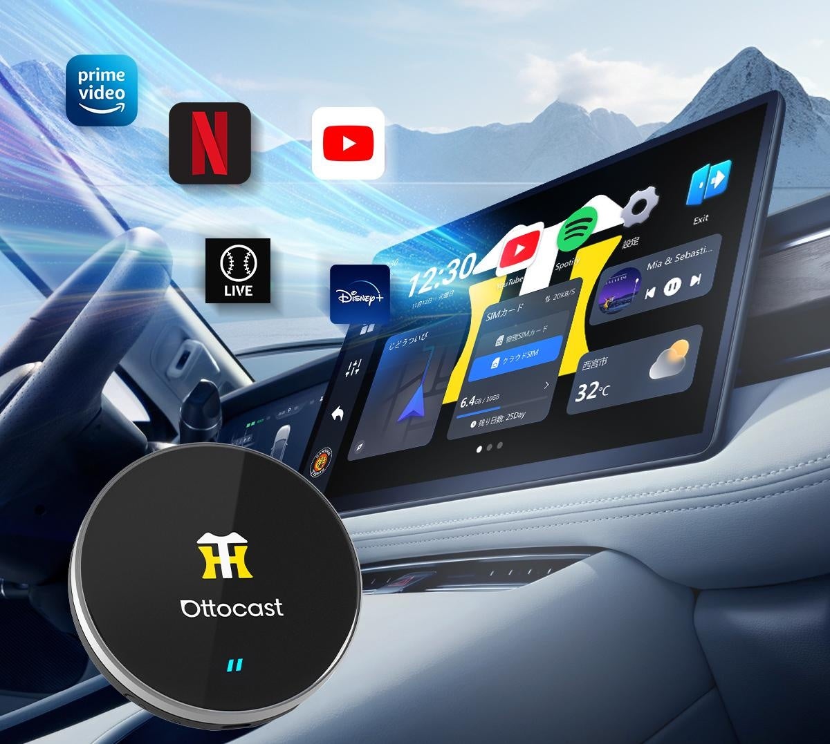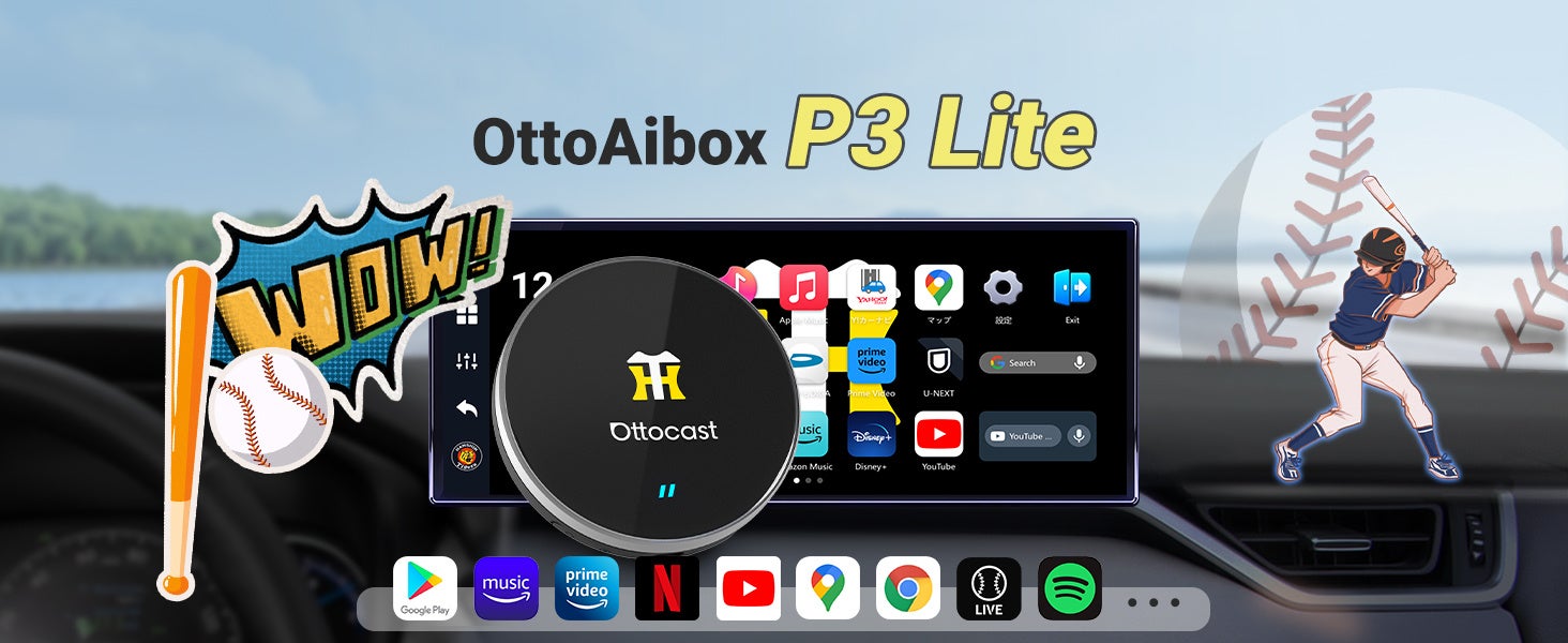 『OttoAibox P3 Lite』は、有線CarPlay対応車をAndroid化し、YouTubeやNetflixなどの動画コンテンツをはじめ、ナビアプリや音楽アプリなど、あらゆるAndroidアプリを使用可能にする革新的なAI Boxです。