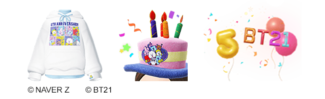 また、1月6日(金)より5周年パーティーが期間限定でスタート! BT21のキャラクターがワールドに登場し、一緒にクエストをクリアすることでキャラクターのサイン色紙をゲットすることができます。さらにパーティー気分を盛りあげる5周年記念のアイテムも展開するので、新年の始まりは大好きなキャラクターたちとの楽しい時間をメタバースでお過ごしください。