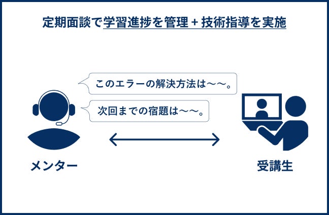 2. 定期メンタリングで学習管理し、挫折やモチベーション低下を徹底防止