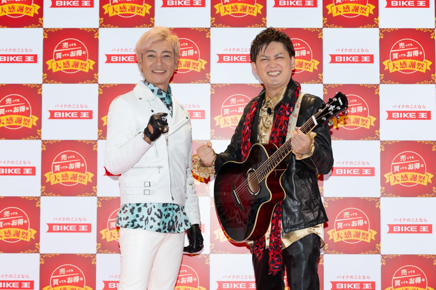 プレス発表会には、今回のTVCMにもご出演いただいている、つるの剛士さん、AMEMIYAさんをお招きし、新CMのご紹介、CM撮影時のエピソードとともに、バイク王世田谷本店の店内をいち早くご覧いただきました。