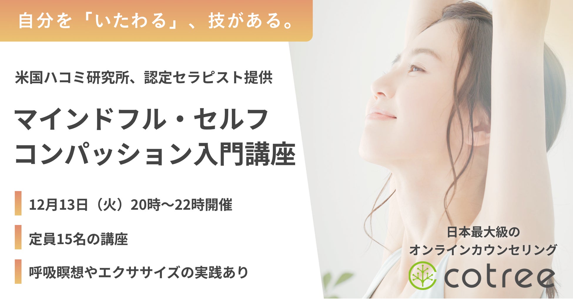 オンラインカウンセリングのcotreeが「マインドフル・セルフ・コンパッション入門講座」を開催!