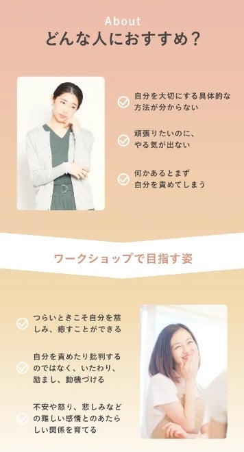 周りの人に対する思いやりも、まず自分自身に優しくいたわりの気持ちを持つことから始まります。実際に体験されてみると、自分をいたわることは想像していたよりもずっとやさしいことだと気づくかもしれません。