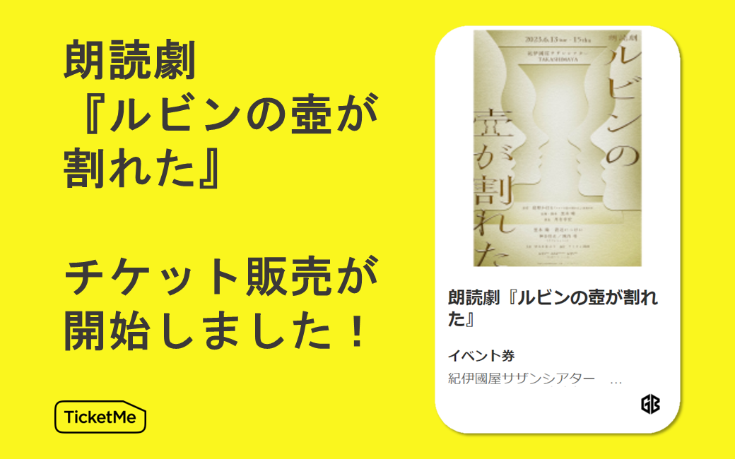 2023年6月13日~15日に紀伊國屋サザンシアターで開催の朗読劇「ルビンの壺が割れた」のチケット販売が開始しました。