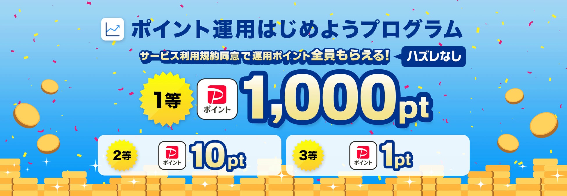 プログラム期間中、「ポイント運用」のサービス利用規約に同意された方全員を対象に、抽選で最大1,000ポイントの運用ポイントをプレゼントします。