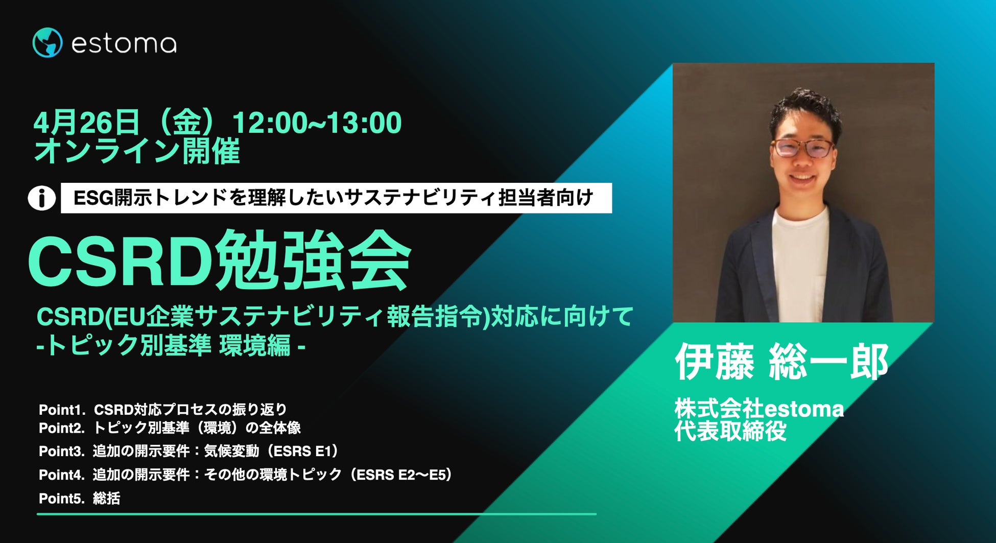 世界初のESG情報統合管理クラウドを運営する「estoma」(東京都千代田区、代表取締役:伊藤 総一郎、以下:estoma)は、2025年1月から報告義務化がスタートするサステナビリティ報告指令の開示要件であるトピック別基準(環境編)について対応方法や具体的な開示内容などを調査したレポートを公開しました。