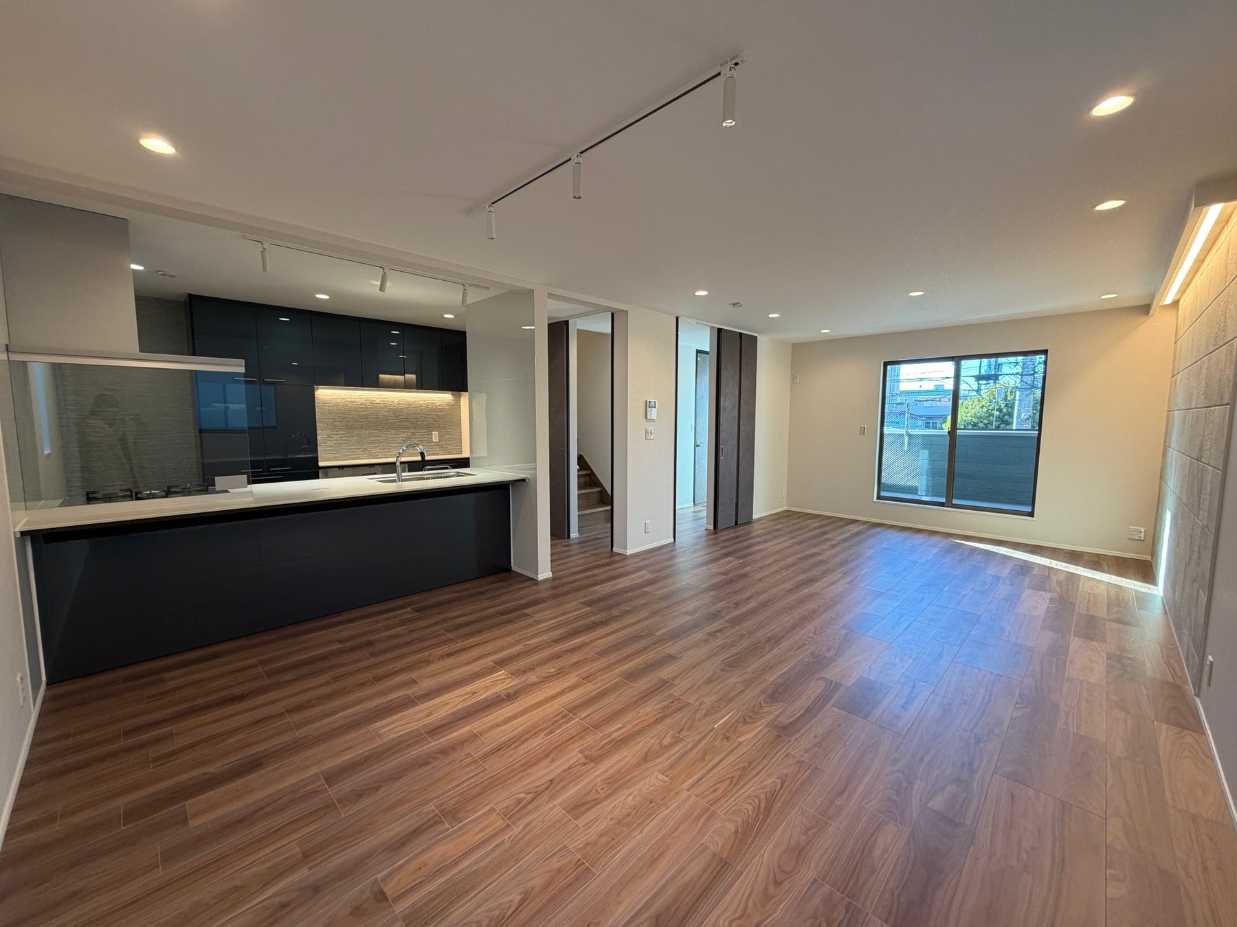 大きな窓から自然光が降り注ぎ、開放感にあふれる20帖超のリビング。家族が集う団らんの場としてはもちろん、ゲストを迎える空間としても十分なゆとりがあります。家具の配置自由度も高く、インテリアコーディネートを楽しめる贅沢な設計です。