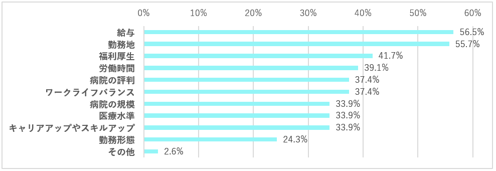 「給与」(56.5%)と「勤務地」(55.7%)がほぼ同率で、5割以上となった。