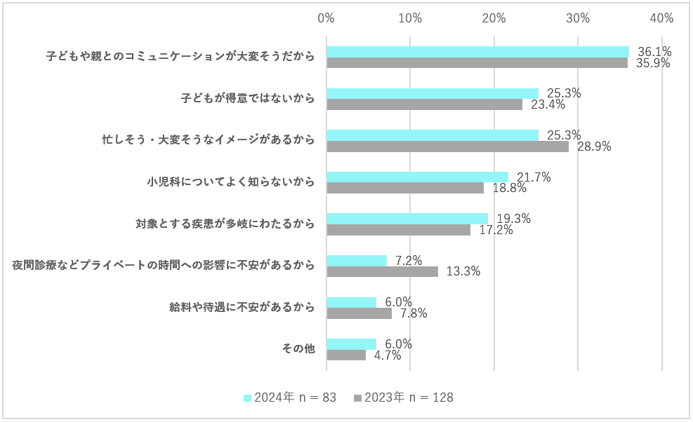「小児科医が不足しているから」(34.4%)などが上位を占めた。(Q7)