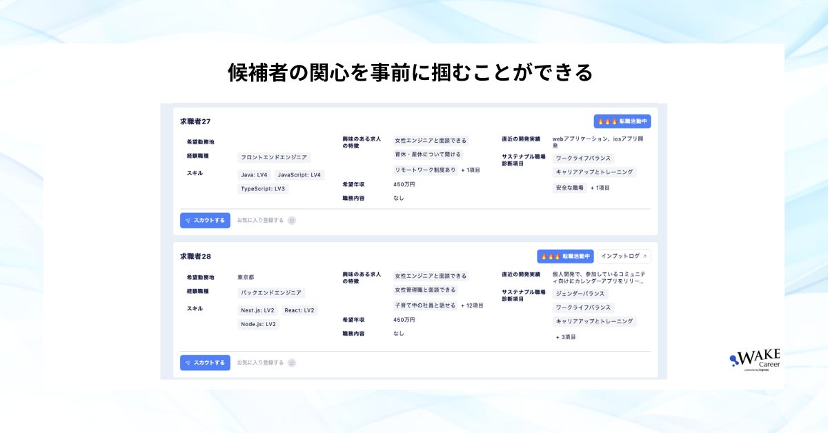 WAKE Careerの『スカウト機能』は、企業にとっても魅力的です: