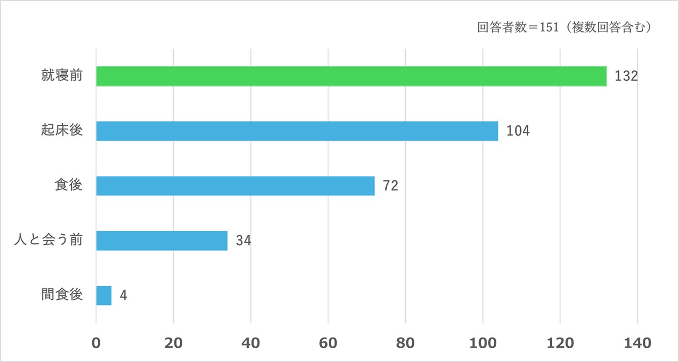 最も多かったのが「就寝前」、続いて「起床後」が2位、「食後」が3位という結果になりました。