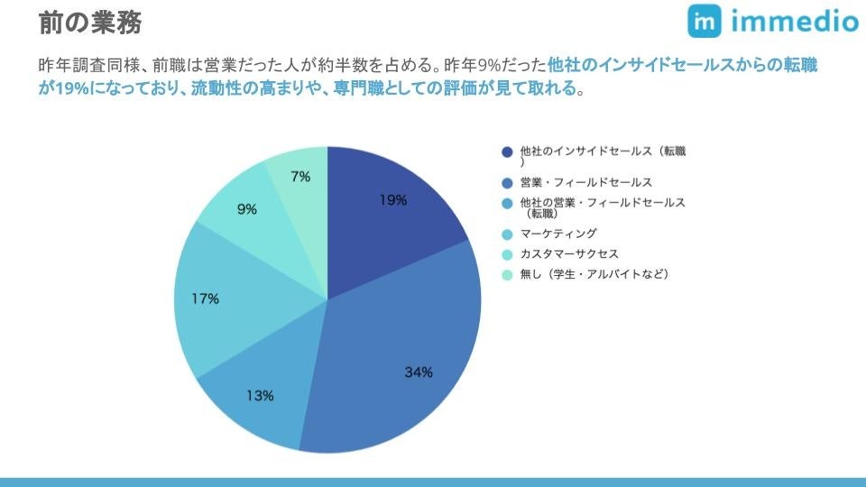 前の業務で最も多いのは営業。次に多いのが他社のインサイドセールス