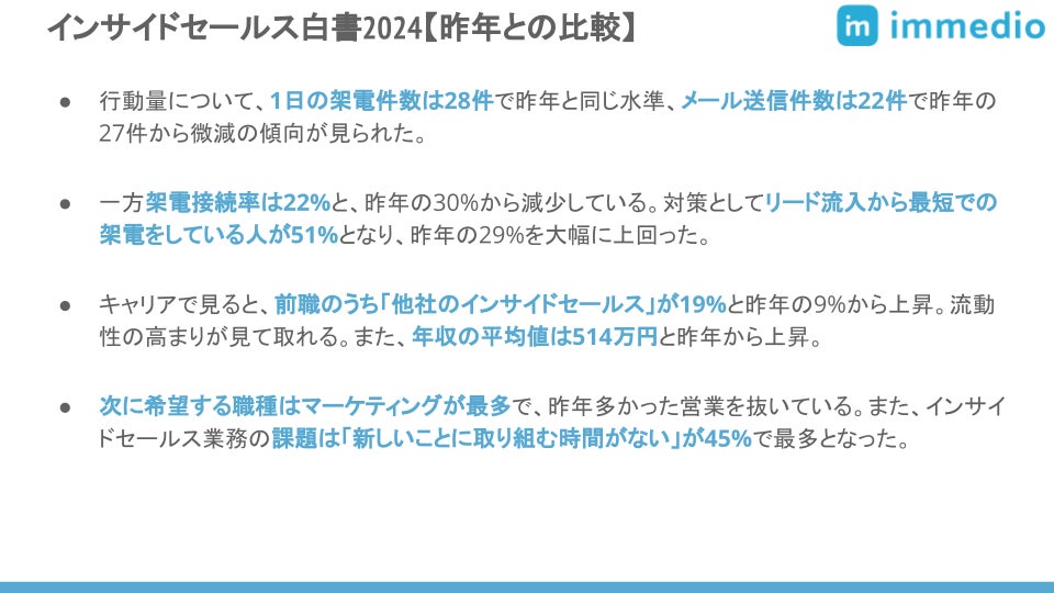 リード商談化ツールのimmedioが「インサイドセールス白書2024」を発刊【昨年との比較編】