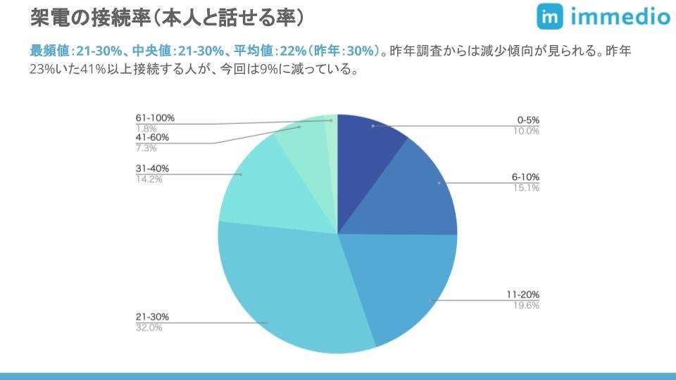 架電のうち見込み客本人と通話できるのは22%