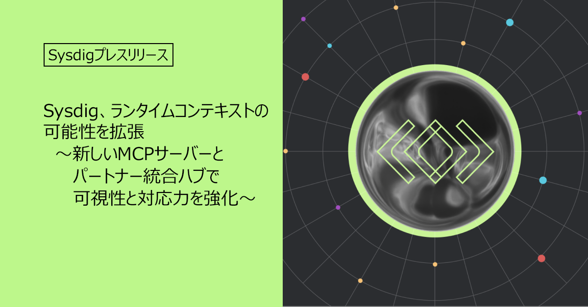 10/15/2025 - 米国カリフォルニア州サンフランシスコ発 – リアルタイムクラウドセキュリティのリーダーであるSysdigは本日、「Model Context Protocol(MCP)サーバー」と「パートナー統合ハブ」の提供開始を発表しました。これにより、SysdigユーザーはAIを活用したセキュリティインサイトをエコシステム全体で利用できるようになります。