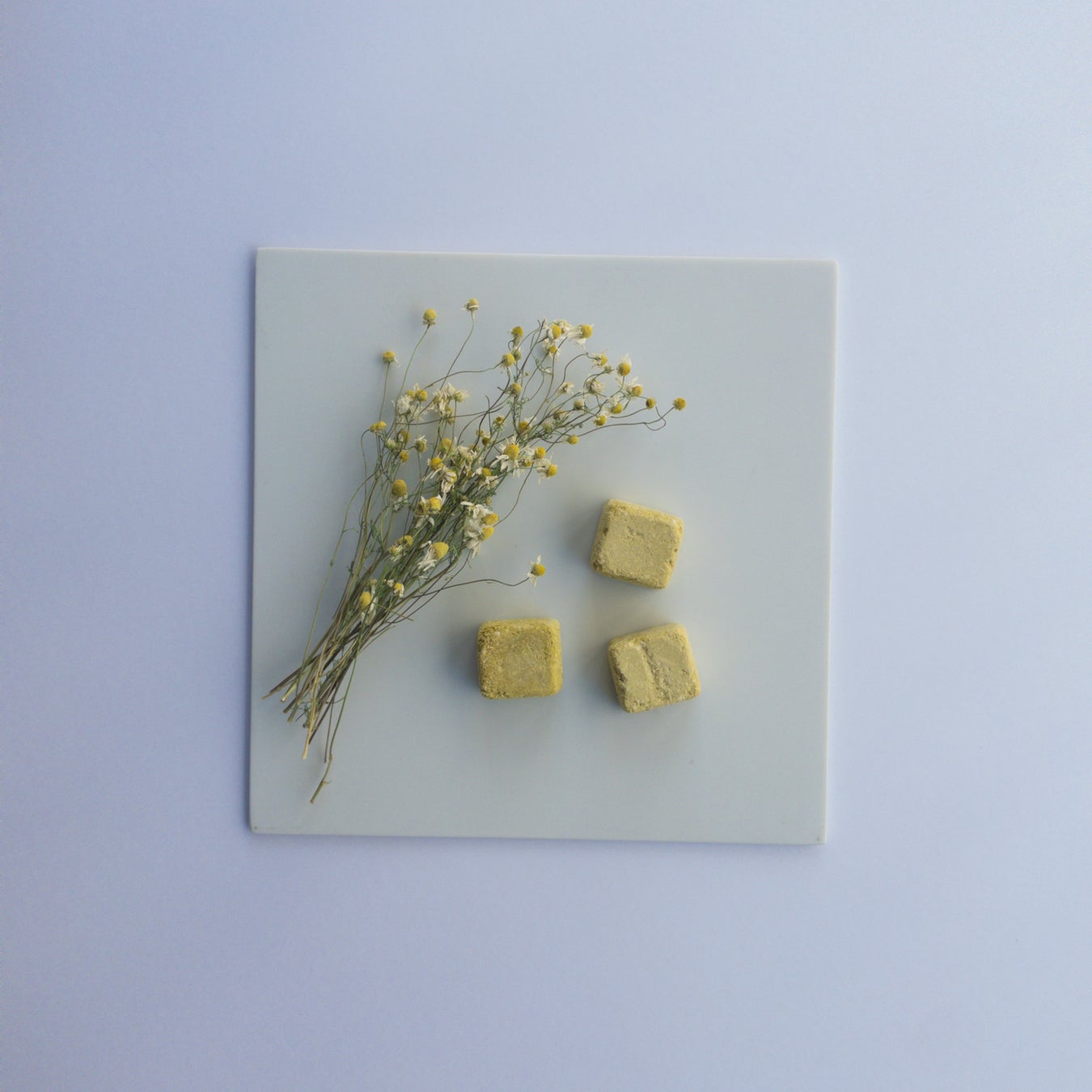 ①WanSoupのキューブをお皿に入れてキューブ1つあたり大さじ2(約30ml)のお湯をかけます。