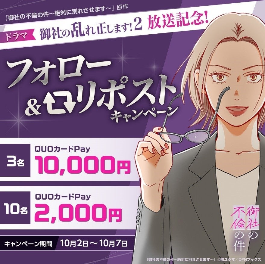 「御社の不倫の件」ドラマ化記念 フォロー&リポストキャンペーン