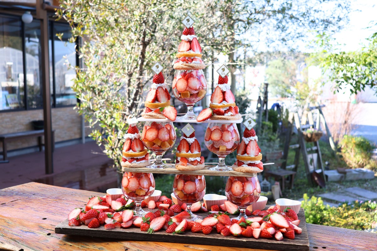 正月明けの初営業日から提供開始!自社農園の完熟いちごを最大6個盛り「べりーちゃんのいちごタワーパフェ」登場!