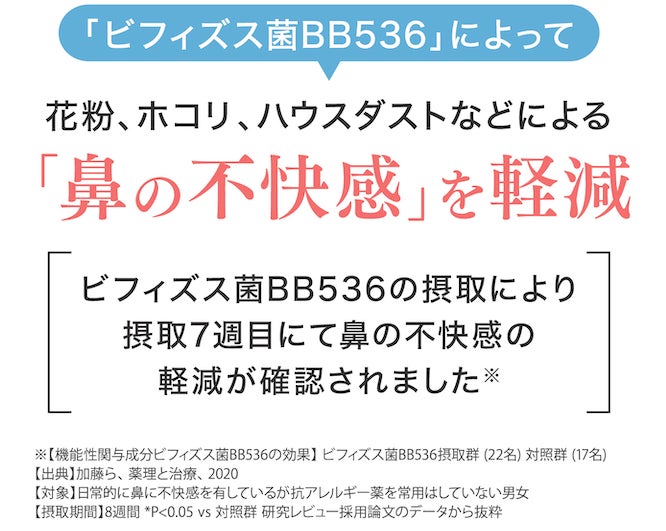 機能性関与成分:ヒハツ由来ピペリン類 120μg、ビフィズス菌BB536 40億個