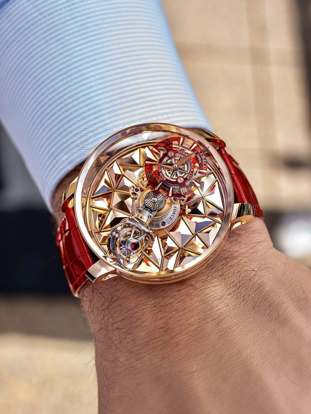 2025年には、さらなる進化として「ワールドイズユアーズ デュアルタイムゾーン トゥールビヨン」が登場。中央に大型のトゥールビヨンを配置し、時刻表示やディテールのすべてが視覚的に際立つ構成へと刷新されました。機能性と芸術性を同時に追求し、“旅するラグジュアリー”というジェイコブの世界観を凝縮したシリーズとして、今後の定番化が期待されています。
