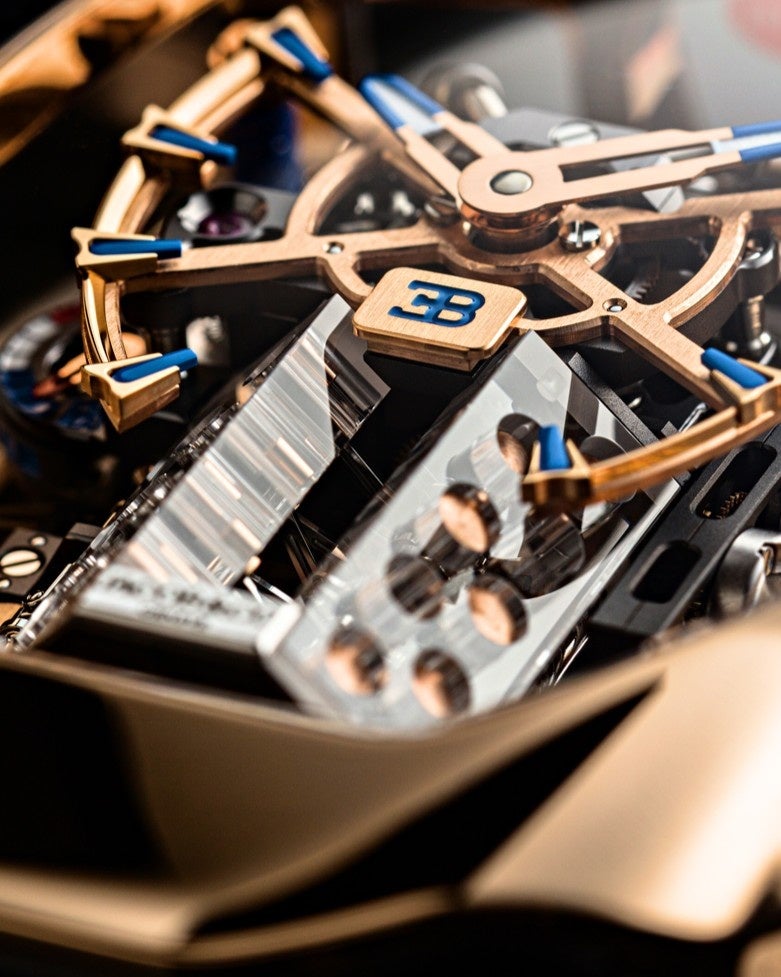 さらに2024年には、実車と同名の「ブガッティ トゥールビヨン」が登場。前作のメカニカルな魅力を踏襲しつつ、構造・素材・デザインのすべてがアップデートされ、より洗練された「駆動するアート」へと進化。自動車と時計という異なる次元を、機械美という共通言語で結びつける本作は、まさに“スピードと精度”の象徴です。