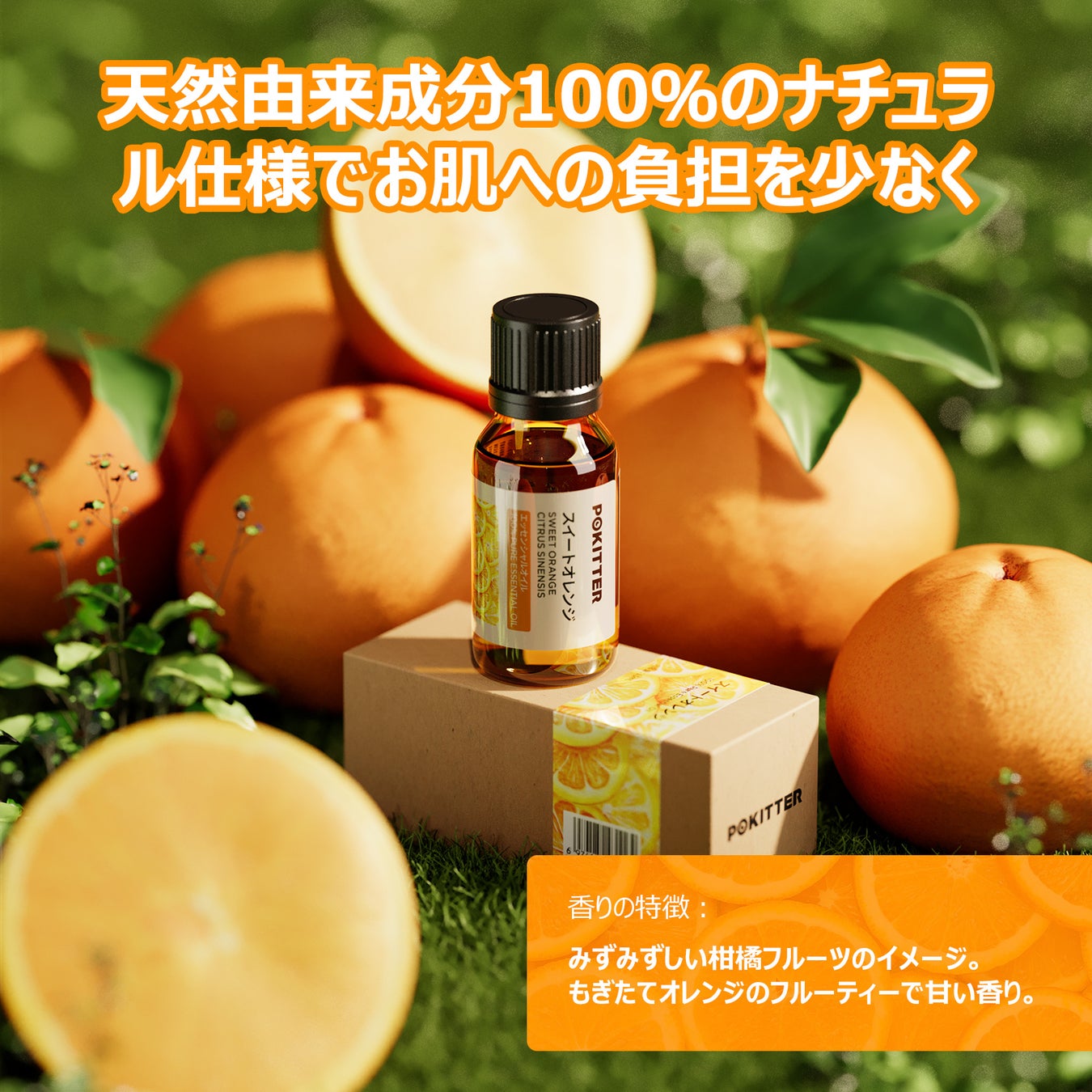 POKITTERのオレンジ精油は、甘くフルーティーな香りが特徴的で、リラックス効果があります。ラベンダー精油は、穏やかで花の香りがあり、ストレスや不安を和らげる効果があります。どちらの精油も、100%天然であり、化学物質を含んでいません。