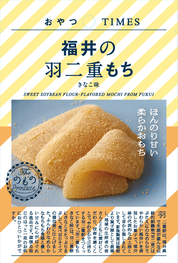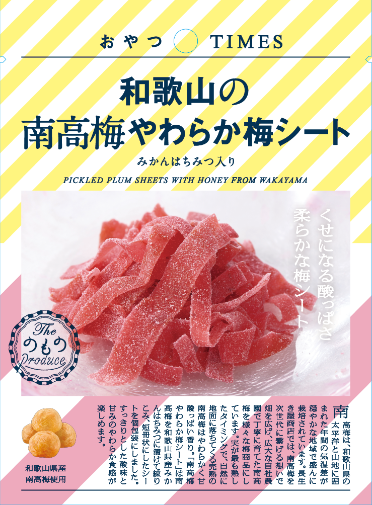 地産品ショップ「のもの」プロデュース『おやつTIMES』新商品「福井の羽二重もち きなこ味」と「和歌山の南高梅やわらか梅シート みかんはちみつ入り」を販売します