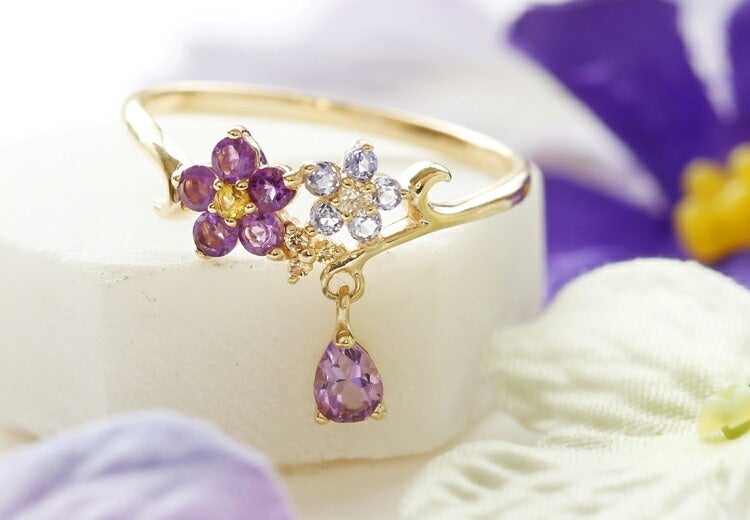 魅惑の香りがいまにも漂ってきそうな可憐なすみれ色の花をリングにしました。