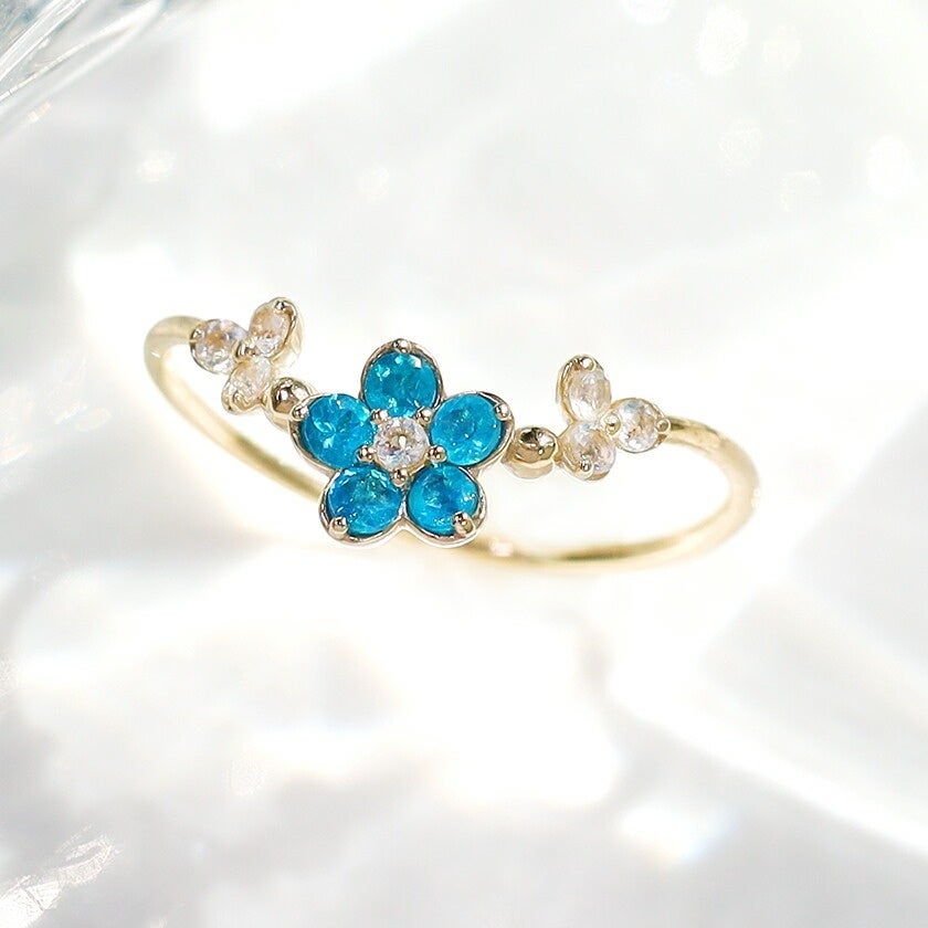 「ネモフィラ」アパタイト×ブルームーンストーン×イエローゴールドリング・モモリア