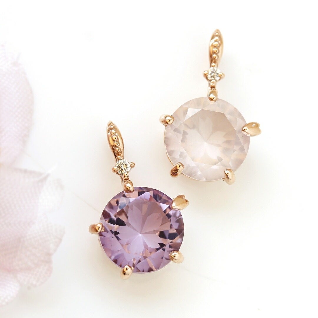 覗き込むとジュエルの中に可憐な桜が浮かび上がる・・「さくらイン・カット」のローズクォーツとローズアメジストをあしらって、とっておきの桜ジュエリーをおつくりしました。