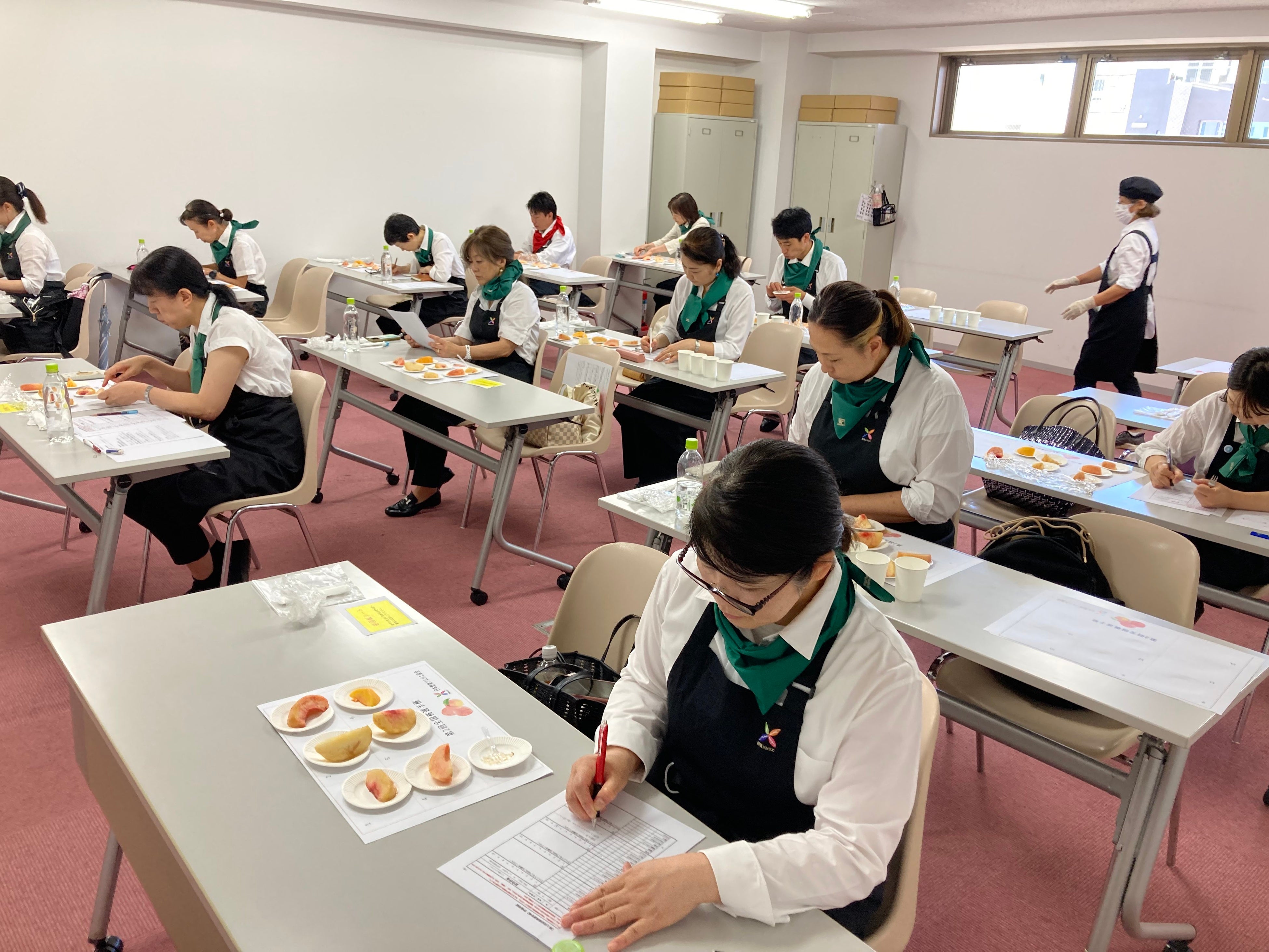 日本野菜ソムリエ協会では、毎月1回「野菜ソムリエサミット」として、野菜ソムリエによる野菜・果物とその加工品の品評会を実施しております。その目的は、価値ある青果物や加工品を評価・認証し、広く世の中に発信することで生産者を応援し、日本の農業の活性化に寄与することです。特別企画として、青果物のさらなる価値向上を目指す青果物の品評会として全国青果物選手権を開催しております。
