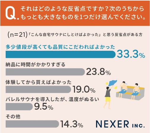 ●33.3%の人が自宅用サウナを設置後に「品質にこだわればよかった」