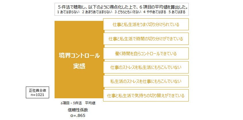 仕事と私生活で時間や気持ちの切り分けができている状態を「境界コントロール実感」として測定※2。