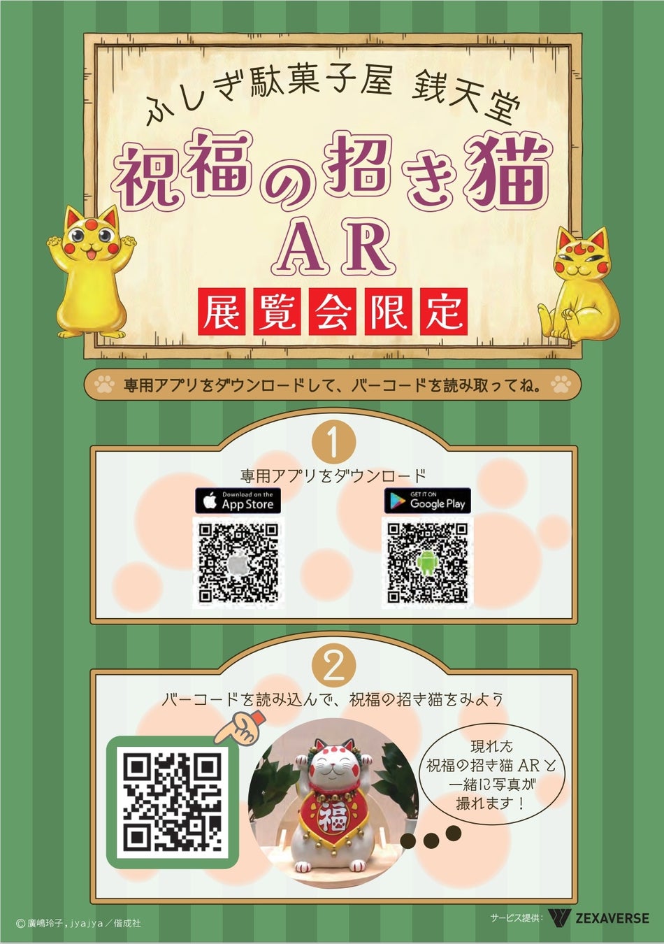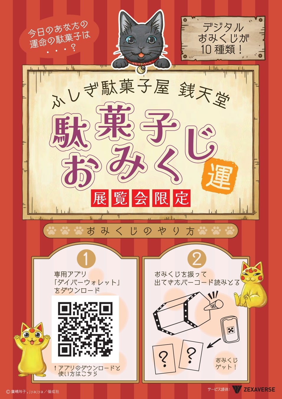 株式会社ゼクサバース(本社:東京都千代田区、代表取締役:上瀧 良平、以下「ゼクサバース」)は、「群馬県立土屋文明記念文学館」(所在地:群馬県高崎市)で2024年7月6日(土)より開催する「ふしぎ駄菓子屋 銭天堂へようこそ」にて展示会限定駄菓子おみくじNFTをプレゼントいたします。また、館内では「祝福の招き猫」のARと一緒に写真撮影ができます。