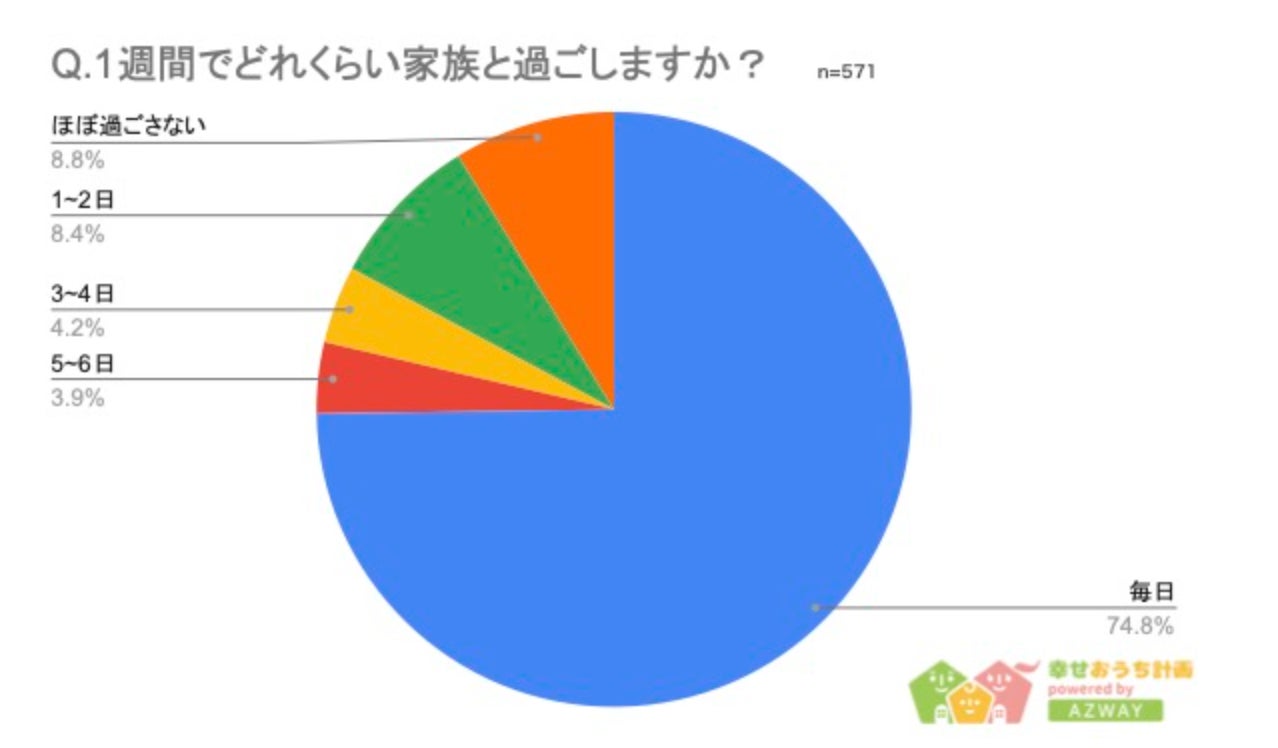 今回不動産メディア「幸せおうち計画」を運営する、株式会社AZWAY(本社:東京都豊島区、代表取締役:井口梓美)は、10代から60代以上までの571人を対象に「家族といる時間の長さ」についてアンケートを実施しました。