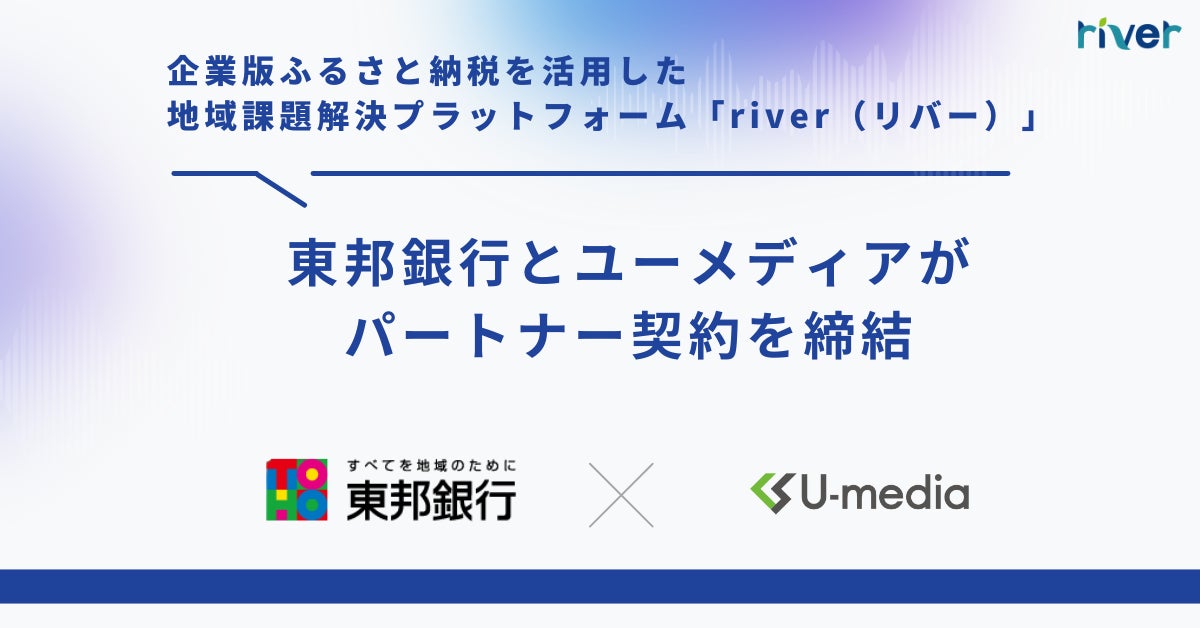 企業版ふるさと納税を活用した地域課題解決プラットフォーム「river(リバー)」を運営する株式会社カルティブ(本社:神奈川県横浜市、代表取締役:池田 清)は、riverで東北地方を担当する株式会社 ユーメディア(本社:宮城県仙台市、代表取締役:今野 均)と、株式会社東邦銀行(本店:福島県福島市、取締役頭取:佐藤 稔)が企業版ふるさと納税の地域課題解決に向けた総合サービス支援事業に関する「パートナー契約」を締結したことをご報告いたします。