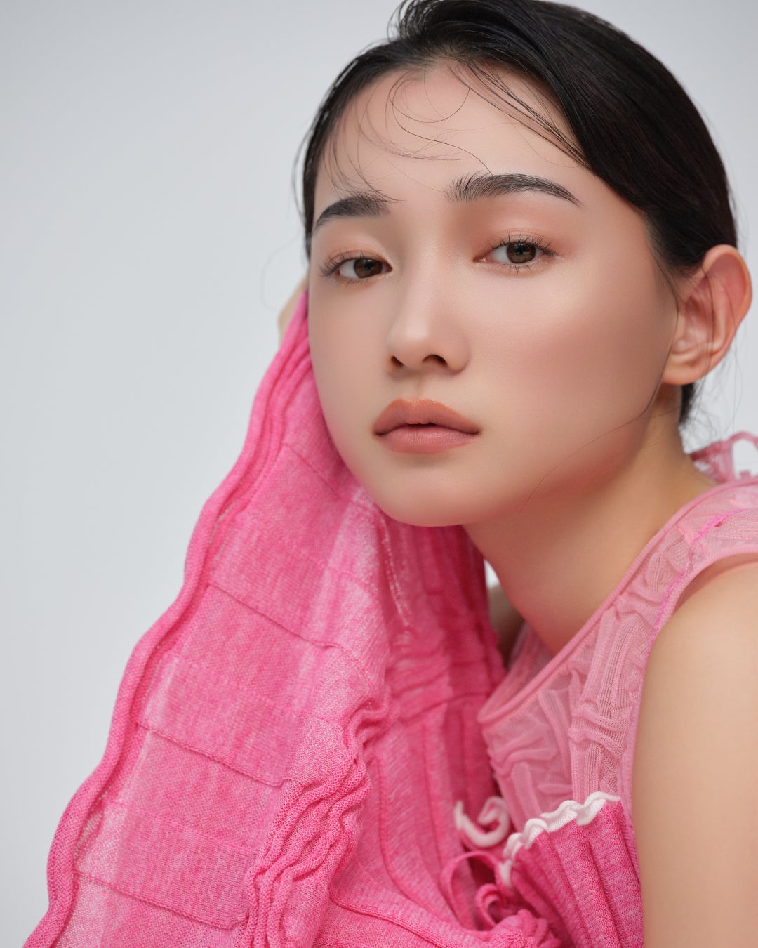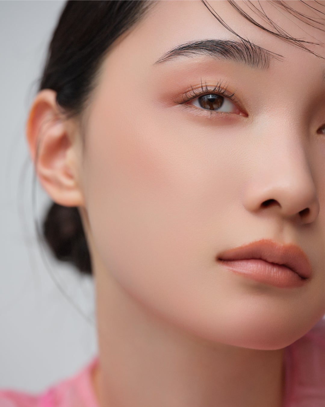 白っぽさはやや控えめに、血色感を思わせるピンクを感じるようなベージュで、顔全体までもが華やかな印象に。