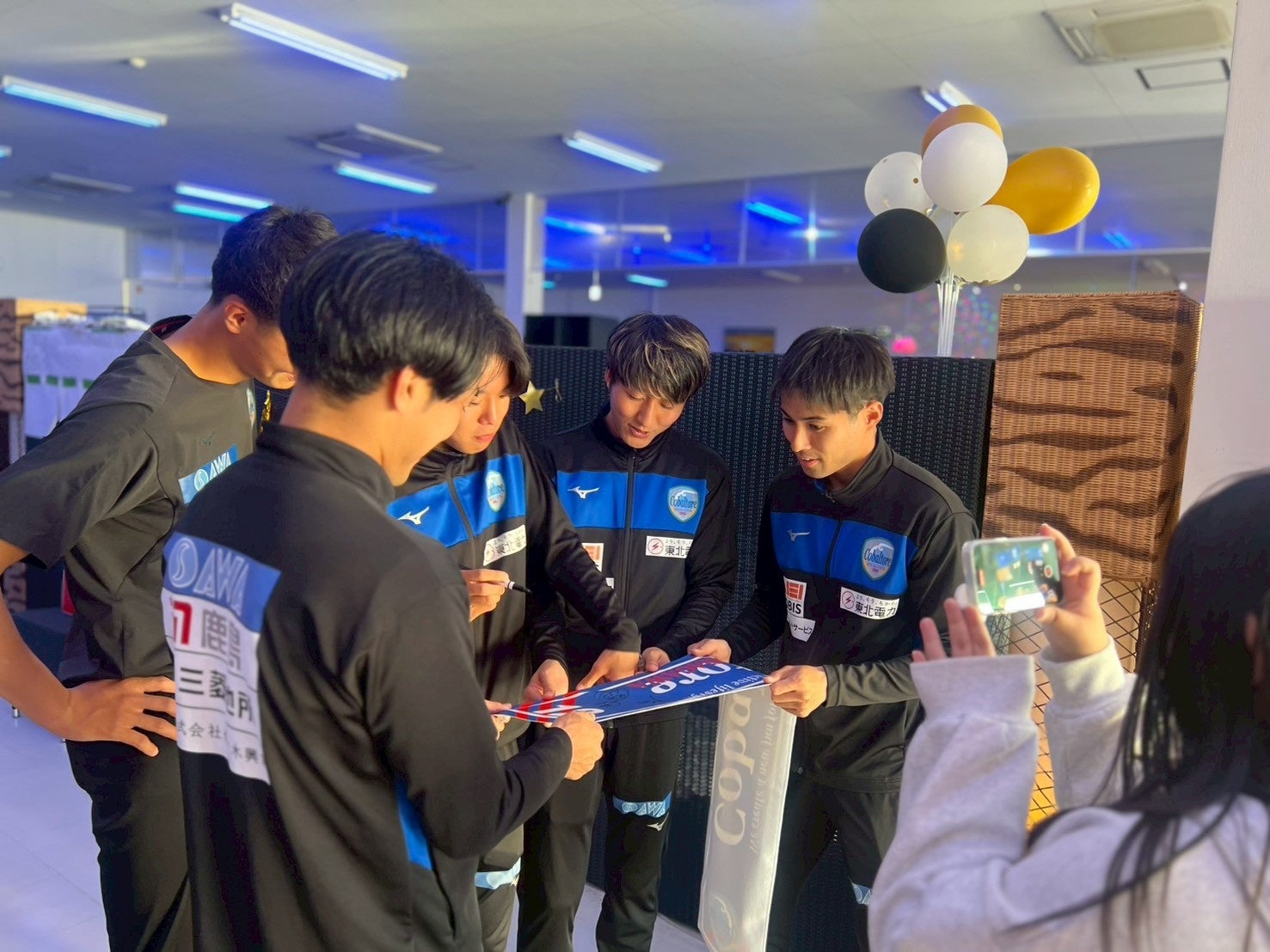 また同日、女川スタジアム近隣に位置するアッティーボジム矢本・石巻店では、開業6周年を記念した感謝イベントも開催。当日はコバルトーレ女川の選手数名が来場し、ジム会員や地域住民と記念撮影やフットサルなどを通じて交流が行われました。