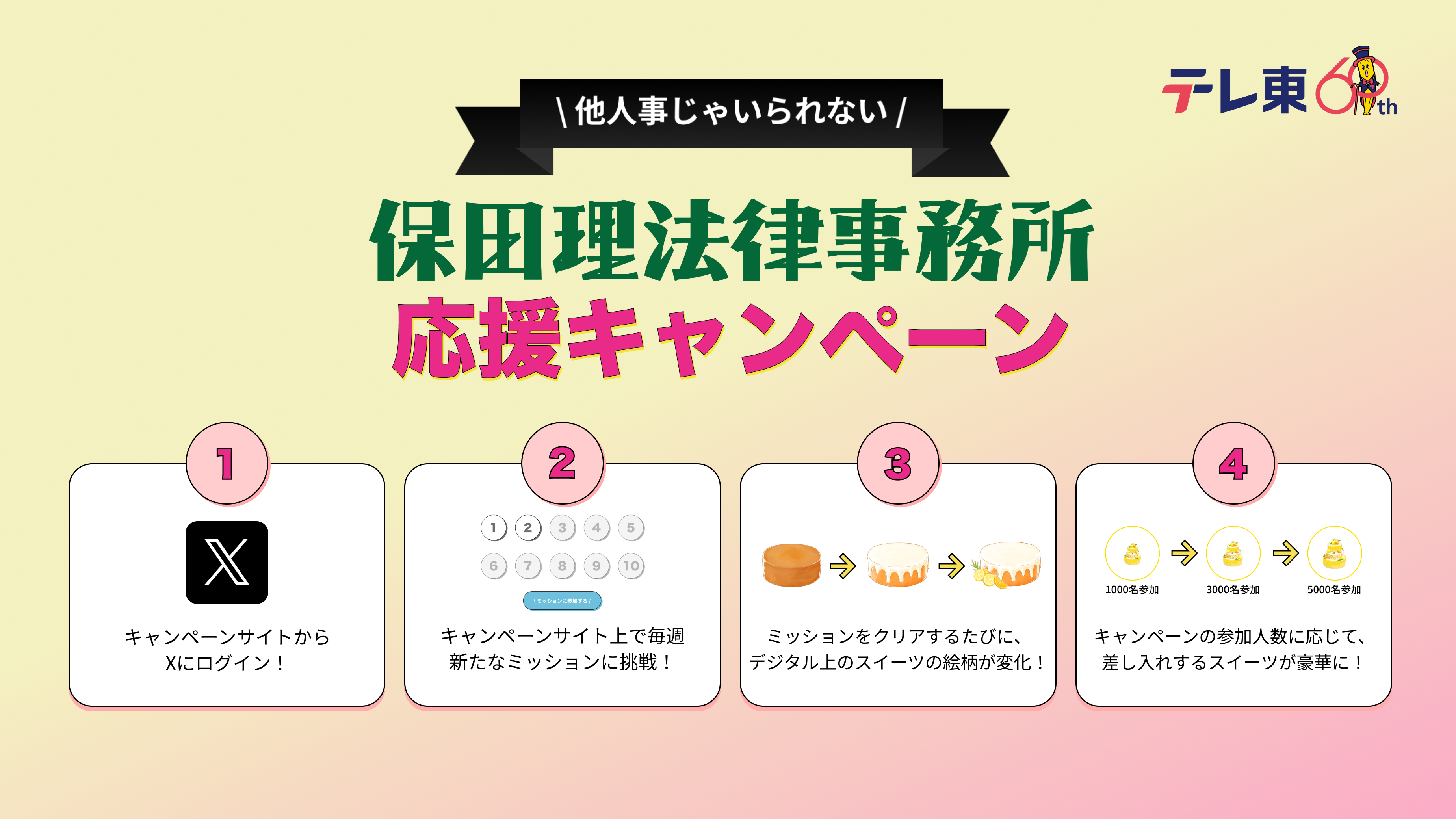 名称:「\他人事じゃいられない/ 保田理法律事務所応援キャンペーン」