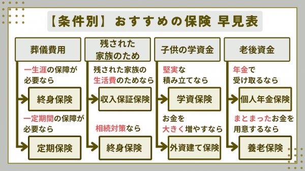 加入するべき生命保険が分かる!「おすすめの保険早見表」の見方