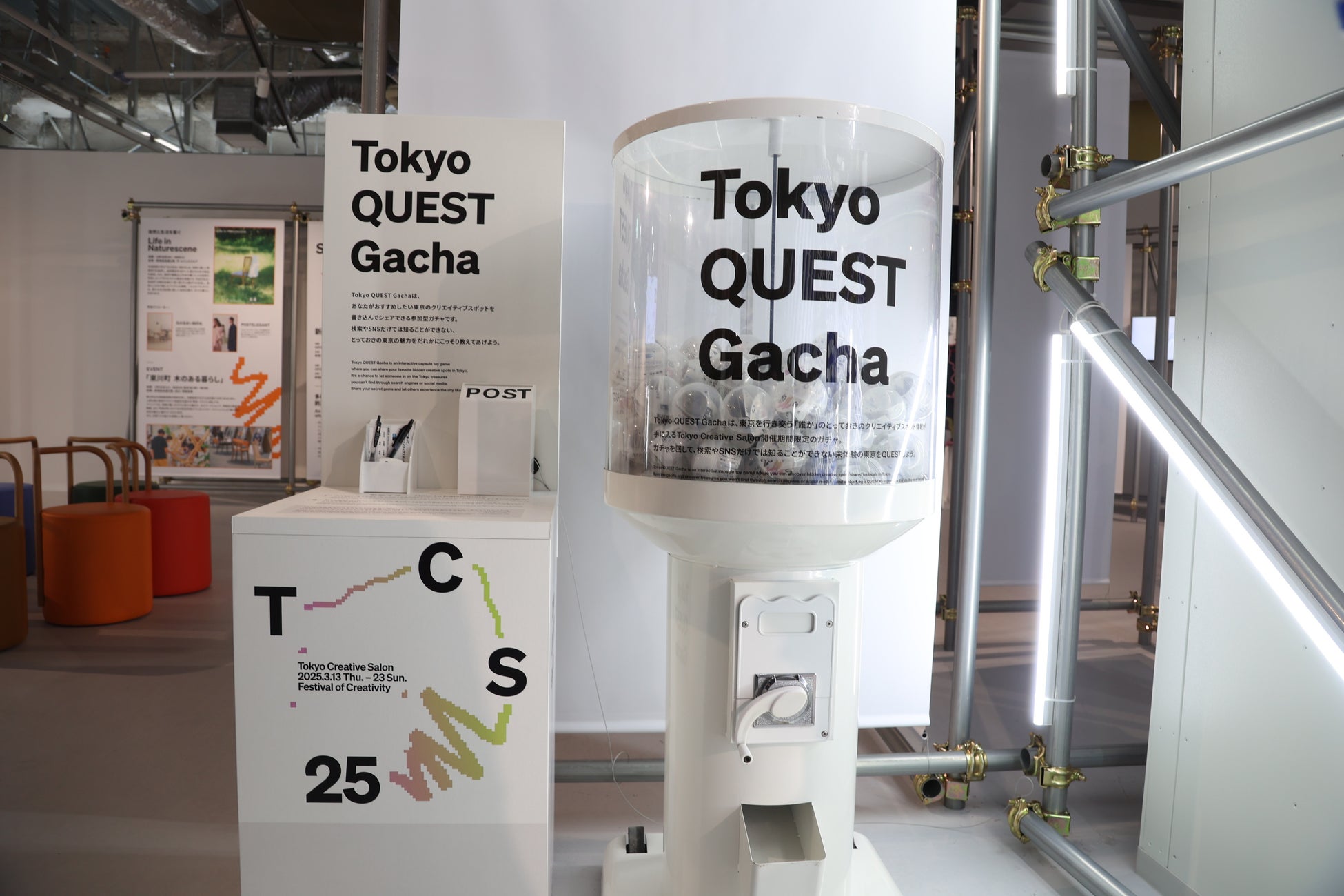 TCS2025のテーマ「QUEST|さがそう〜創造性・美意識の探求〜」に合わせ、新たなに、東京を行き交う”誰か”のとっておきのクリエイティブなおすすめスポット情報が手に入るガチャ「Tokyo QUEST Gacha - AREA Edition -」を各エリアに設置。事前に集めた、とっておきのおすすめスポット情報は、関係者だけでなく、一般の方からも募集しました。