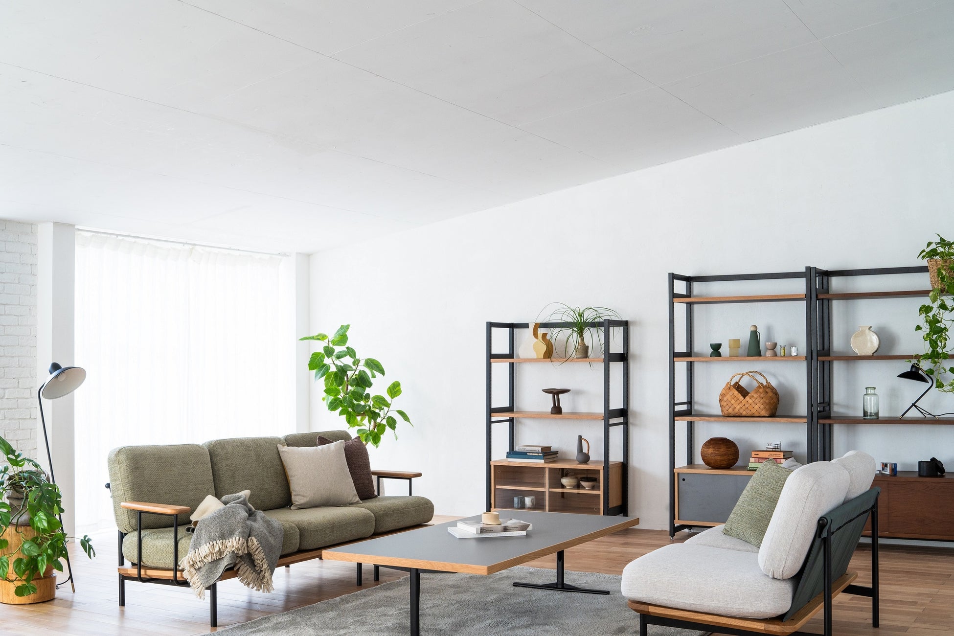 今回追加されたカラー「ダスティグリーン」と「ホワイトグレー」は、シンプルながら洗練された色合いで、モダンや北欧、ナチュラルなど幅広いインテリアスタイルに調和しやすく、室内空間を引き立てるアクセントになります。