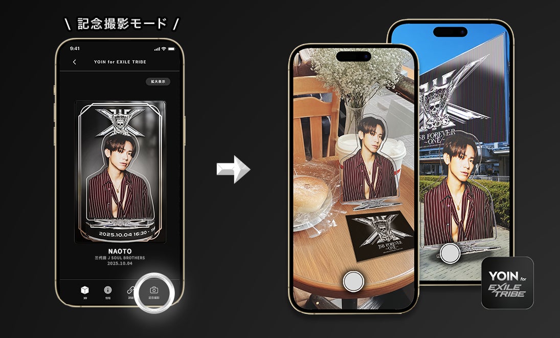 さらに、デジタルアクスタをスマートフォン上に表示して写真撮影できる機能付き! アプリ「YOIN for EXILE TRIBE」にて、LIVE CARDコレクションだけでなく、ライブに参加した記念撮影もお楽しみいただけます。また、撮影機能を使用したSNS投稿キャンペーンも実施致します。